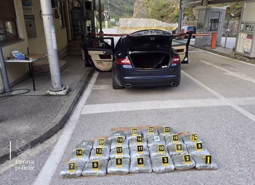 Policijski službenici Regionalnog centra granične policije „Centar“, u koordinaciji i saradnji sa Odsjekom za suzbijanje prekograničnog kriminala, juče su na graničnom prelazu Šćepan Polje spriječili krijumčarenje 25 kilograma marihuane i lišili slobode crnogorskog državljanina iz Zete.