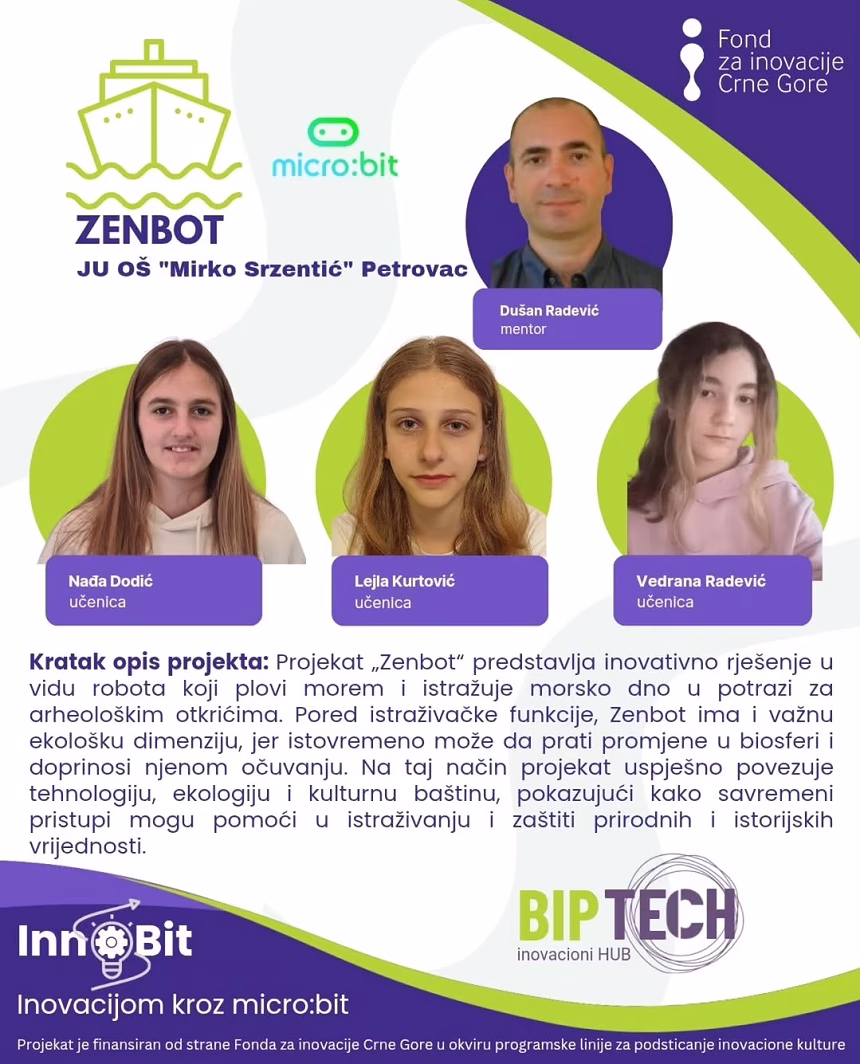 Učenice OŠ „Mirko Srzentić“, uz podršku mentora Dušana Radevića, razvile su inovativni projekat „Zenbot“ koji spaja modernu tehnologiju, arheologiju i zaštitu životne sredine.
