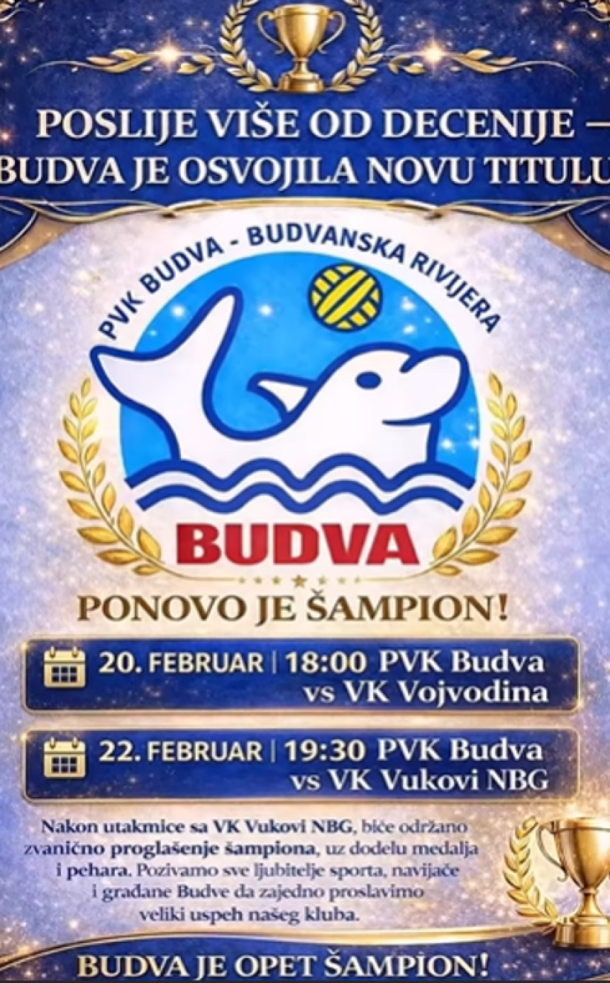 Nakon uspješne sezone u regionalnoj ligi, Vaterpolo klub Budva priprema se za završni vikend pred domaćom publikom. U petak, 21. februara u 18:00 časova, Budvani će ugostiti ekipu Vojvodine, dok je nedjelja u 19:30 rezervisana za duel sa Vukovima sa Novog Beograda, nakon kojeg će uslijediti svečana ceremonija dodjele pehara.